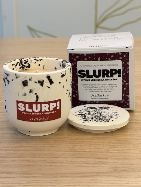MaisonBougie sensorielle SLURP j’peux lêcher la cuillère 100 GR 28,95 € TVAC Ajouter à la liste de souhaits
