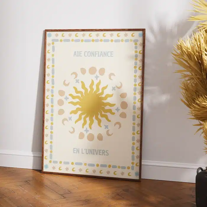 Parce que les mots ont un véritable pouvoir, ces affiches mantras sont là pour t’inspirer et t’accompagner au quotidien. Chaque affirmation de la collection « Mantras » a été pensée pour t’aider à cultiver une énergie positive et un état d’esprit serein. Fais de ta chambre, de ton salon, de ton bureau ou même de ton coin méditation/yoga un lieu rempli d’énergies positives grâce à notre affiche qui t’aidera à te (re)connecter à toi-même et à t’ancrer. Elle ajoutera une touche de bien-être à chaque instant de ta journée : au réveil, au coucher, ou pendant ta séance de méditation ou de yoga.