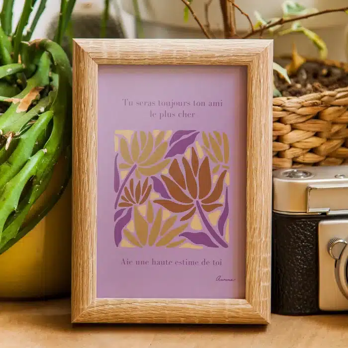 Dépasse tes blocages, émotionnels ou culturels, en réapprenant à communiquer plus positivement avec toi-même. Cette affiche minimaliste de notre série « Zénitude » t’encourage à prendre conscience de ton plein potentiel et à le partager au monde.