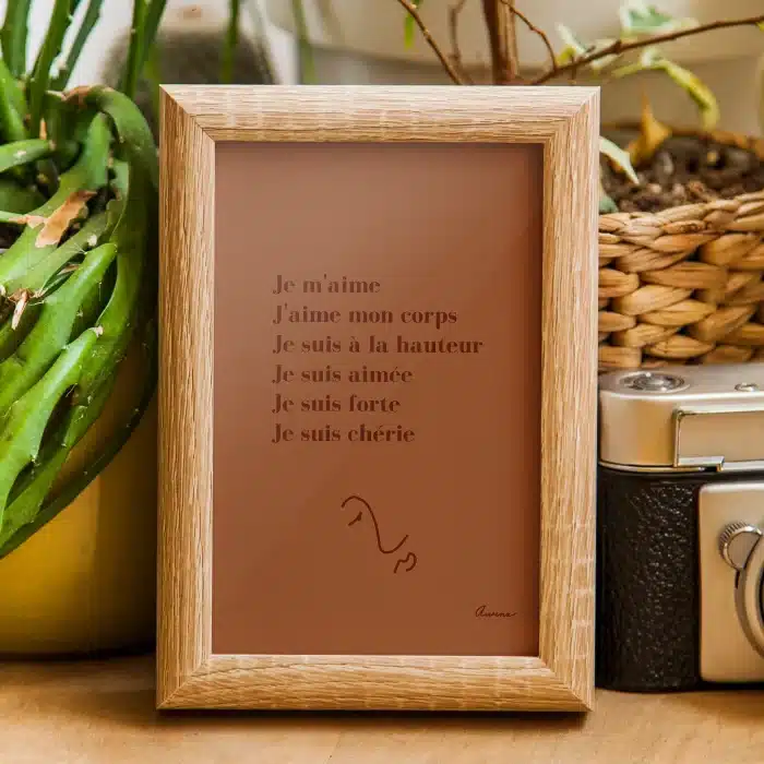 Dépasse tes blocages, émotionnels ou culturels, en réapprenant à communiquer plus positivement avec toi-même. Cette affiche minimaliste de notre série « Zénitude » t’encourage à prendre conscience de ton plein potentiel et à le partager au monde.
