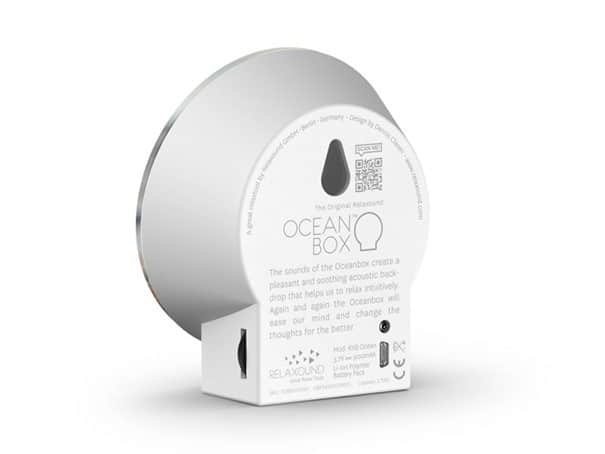 Vous activez l’ambiance sonore de l’Oceanbox au passage grâce à un détecteur de mouvement. Le volume est réglable en continu. Grâce à sa taille compacte et à son fonctionnement pratique sur batterie, vous pouvez profiter de l’énergie rafraîchissante de l’océan où que vous soyez. Dans la salle de bain ou le salon, sur le bureau ou le balcon : désormais, la plage est toujours à portée de main.