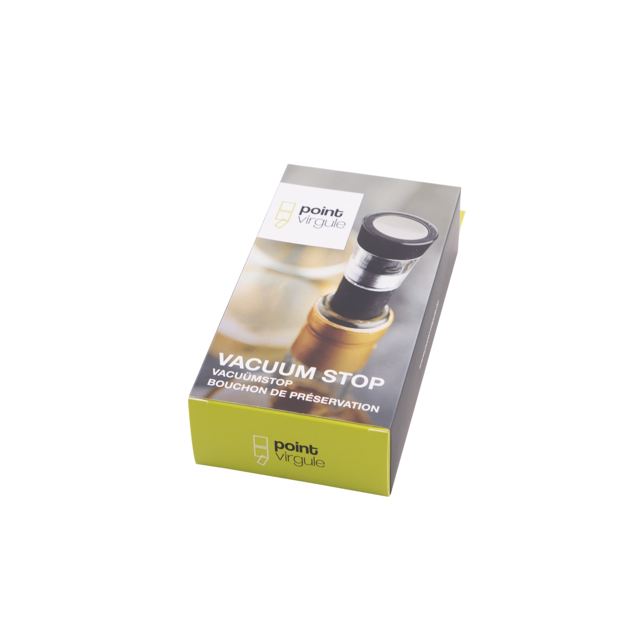 Le bouchon sous vide est en plastique et ferme bien le flacon grâce à sa finition en silicone.
