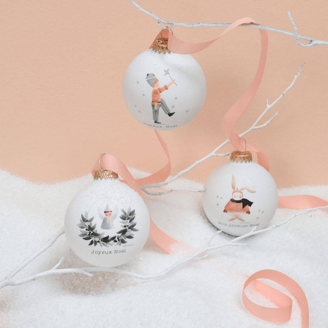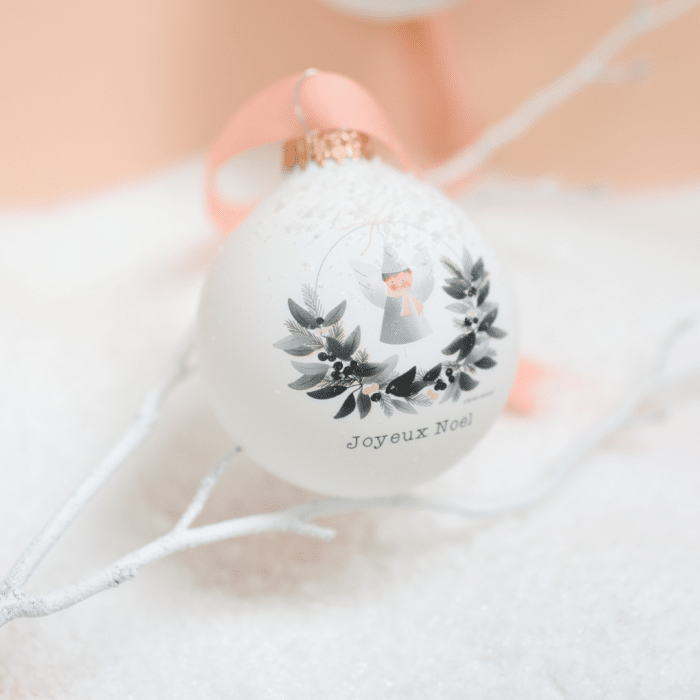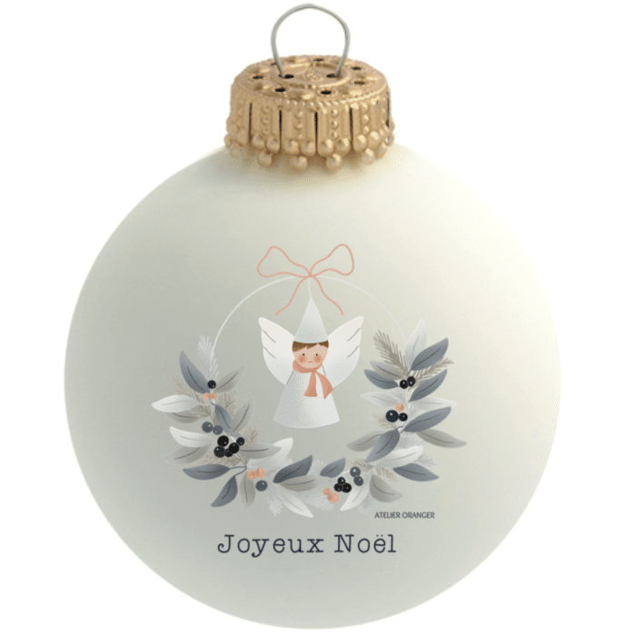 Caractéristiques techniques : Boule de Noël en verre, 1 motif en impression quadrichromie sur une face, fournie avec une cordelette en chanvre.