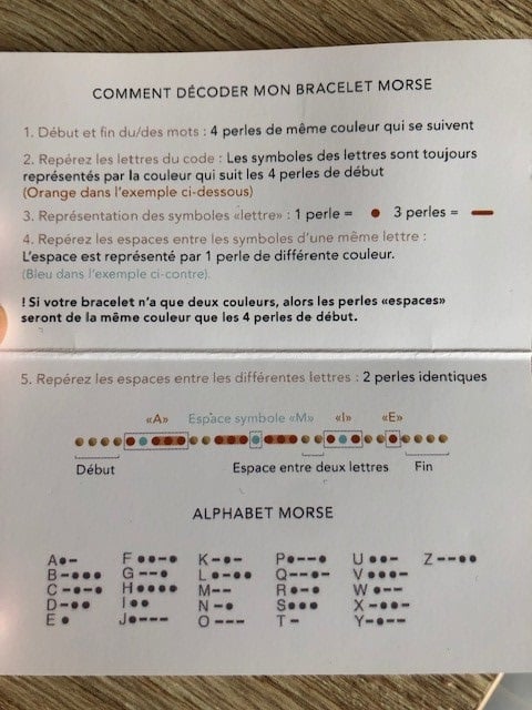 Pour la beauté des bracelets ou pour transmettre un message ? Ces bracelets codés sont exclusifs et unique. Original pour passer un message d’amour, d’amitié ou pour diffuser un message positif. Décoder le message secret grâce au mode d’emploi sur le support.