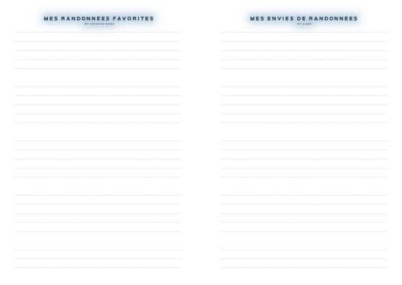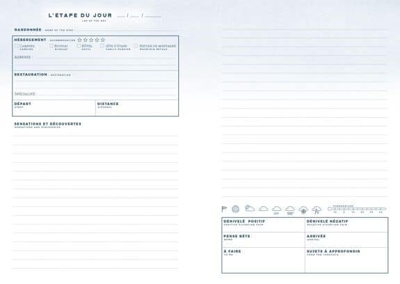 Le carnet de randonnée répond à deux tendances fortes : la randonnée et le journal de voyage. Ce carnet personnel, a été conçu dans un but pratique, afin de pouvoir consigner les souvenirs de sortie, de la manière la plus précise possible. Ces renseignements serviront à conserver une trace écrite et durable des détails utiles si, plus tard, on souhaite renouveler une balade ou tout simplement en faire profiter proches et amis.
