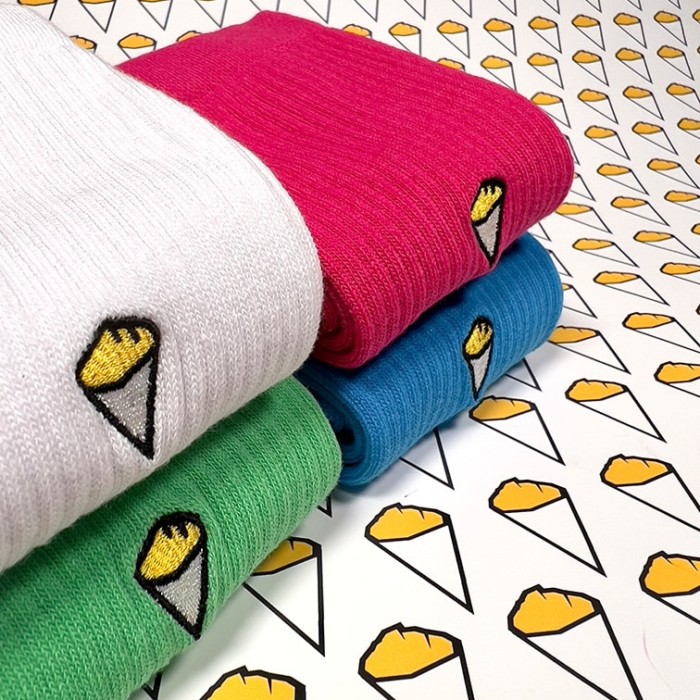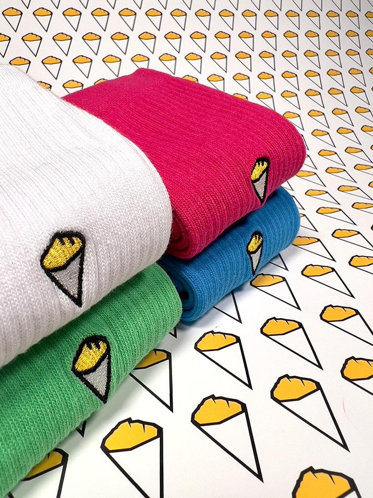 N’hésitez pas à afficher votre belgitude avec les chaussettes cornet de frites, de Bshirt. Elles sont de haute qualité douces et confortables. Taille unique.