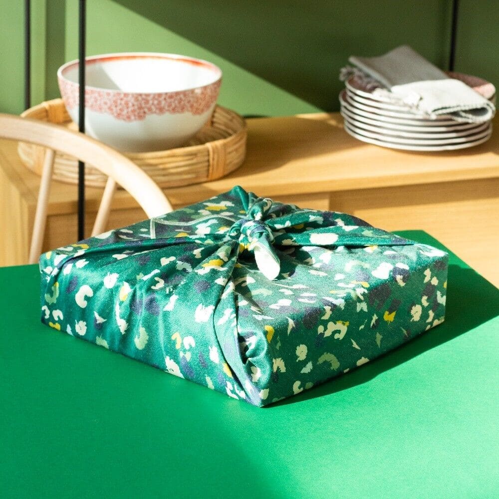 Furoshiki est un emballage cadeau réutilisable en tissu conçu en tissu 100 % recyclé. Fabriqué en France.