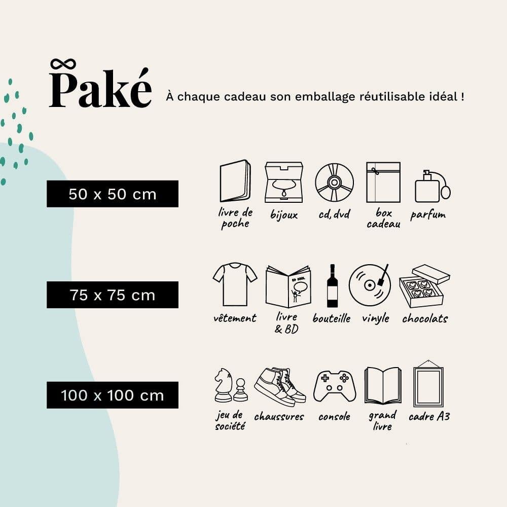 * Option A : La personne qui reçoit le Paké peut rejoindre le mouvement, et l’utiliser à son tour, comme emballage cadeau.