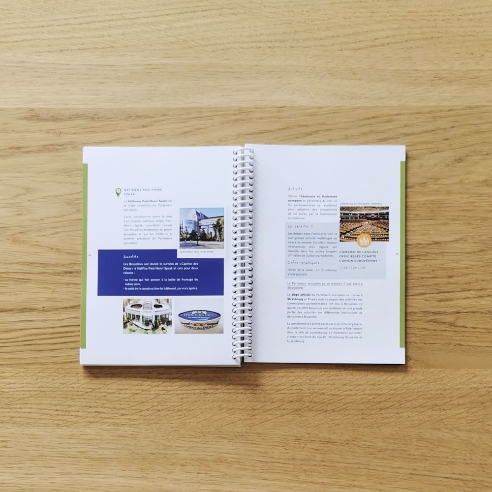 Ce guide se présente sous la forme d’un carnet avec une reliure spirale permettant d’avoir toujours l’Escapa’book ouvert à la bonne page, sans devoir le plier et l’abîmer. Nous voulions éviter le « Zut j’ai perdu la page! »
