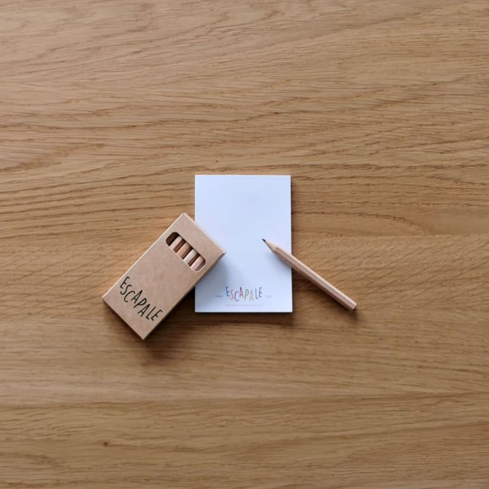 1 bloc-notes et 1 boîte de crayons qui vous serviront pour l’Escapa’quiz et pour répondre aux questions de l’Escapa’book.