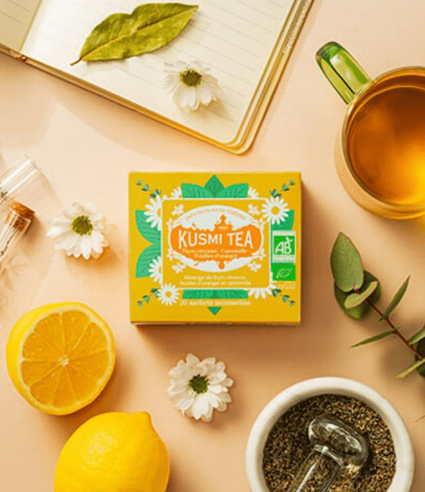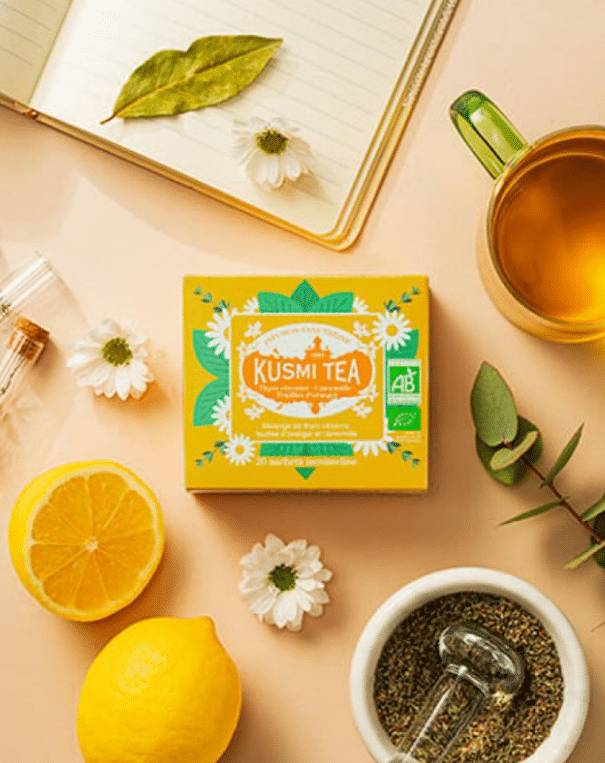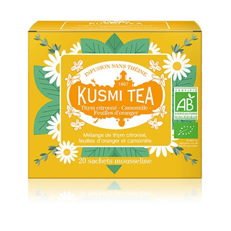 Thym citronné* (42%), feuilles d’oranger* (40%), camomille* (18%) *Produits issus de l’agriculture biologique.