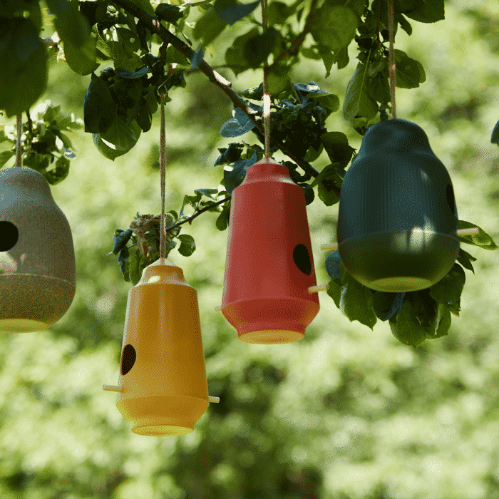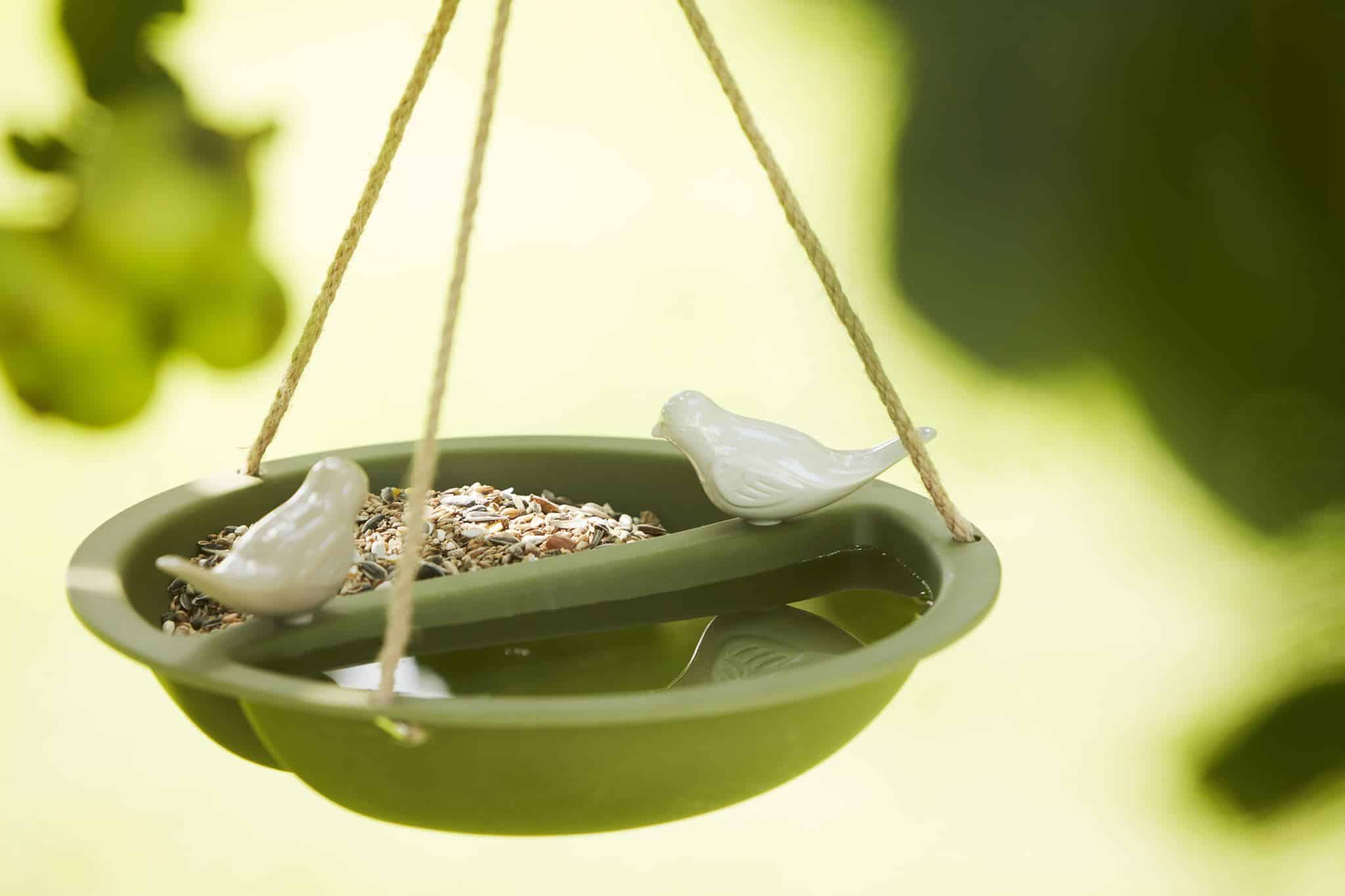 Mettez de la couleur dans votre jardin en accrochant de belles mangeoires pour les oiseaux. Très pratique par sa séparation pour l’eau et la nourriture.