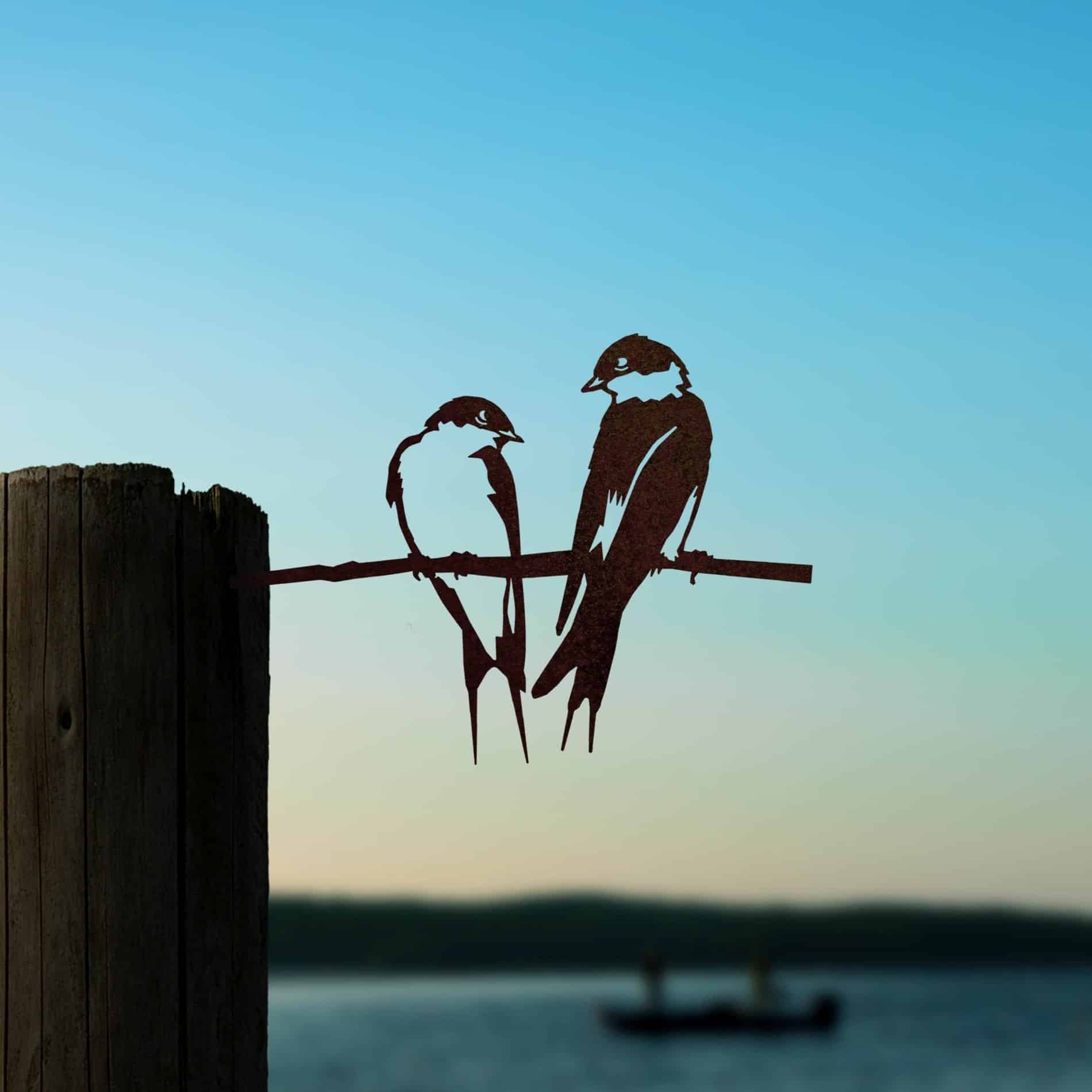 Les hirundinidés comprennent plus de 75 espèces, nous avons donc choisi la plus internationale : l’hirondelle rustique, qui vit sur tous les continents, sauf l’Antarctique. L’hirondelle rustique construit son nid de boue son nos constructions humaines. La longue queue en deux pointes de l’hirondelle s’étend derrière elle en vole, soit la plupart du temps. L’hirondelle est très agile en vol et on la voit souvent voler à quelques centimètres seulement du sol ou de l’eau, en pleine chasse. Un duo de Metalbirds qui a toute sa place dans votre jardin. Un cadeau parfait pour votre petit oiseau chéri.