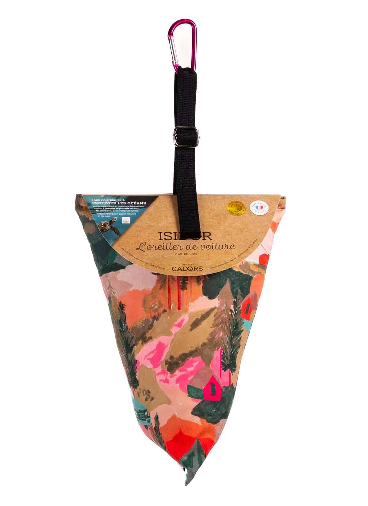 ISIDOR est le premier oreiller de voiture conçu spécialement pour dormir confortablement en voiture, ISIDOR se fixe astucieusement en un clic à l’appui-tête. Il soutient la tête sans tomber, sur des petits ou longs trajets. Il est le compagnon idéal de tous les passagers. ISIDOR est garni avec une fibre polyester légère, moelleuse et Ecolabel utilisée par les professionnels de la literie pour confectionner des oreillers haut de gamme. Elle est fabriquée à partir de plastique recyclé collecté dans les cours d’eau, afin de préserver les océans.