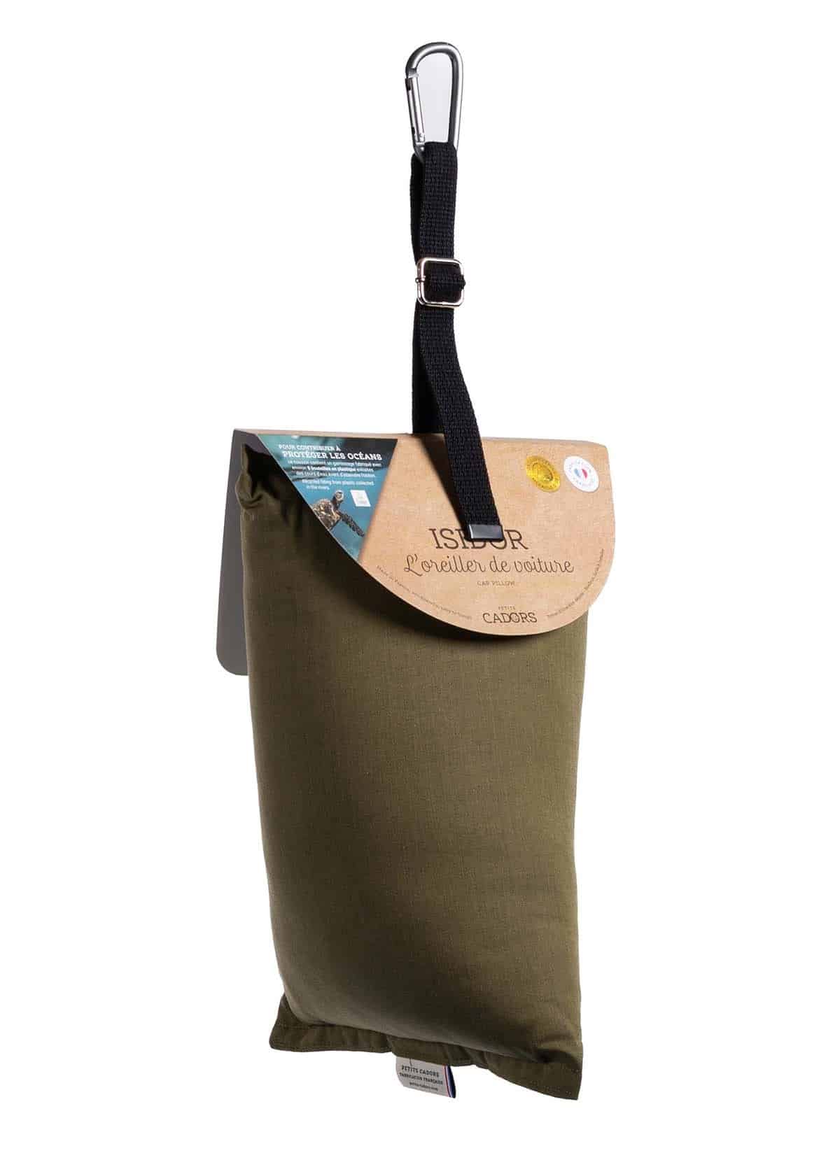 ISIDOR est le premier oreiller de voiture conçu spécialement pour dormir confortablement en voiture, ISIDOR se fixe astucieusement en un clic à l’appui-tête. Il soutient la tête sans tomber, sur des petits ou longs trajets. Il est le compagnon idéal de tous les passagers. ISIDOR est garni avec une fibre polyester légère, moelleuse et Ecolabel utilisée par les professionnels de la literie pour confectionner des oreillers haut de gamme. Elle est fabriquée à partir de plastique recyclé collecté dans les cours d’eau, afin de préserver les océans.