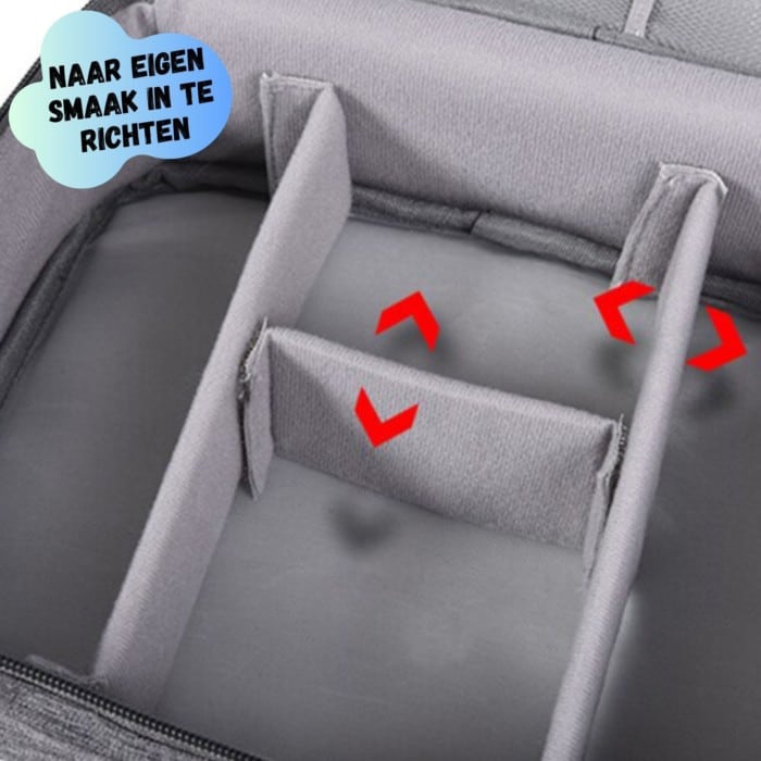 Sac organisateur de câbles personnalisable. Le sac organisateur de câbles offre beaucoup d’espace grâce aux différents compartiments et réglable à l’intérieur. À l’intérieur de l’organisateur de câble se trouvent de petites poches avec élastique. Ces compartiments sont idéaux pour les petits objets électroniques tels que les cartes mémoire, les batteries GoPro et les câbles de charge. Les gros articles électroniques tels que les adaptateurs, les lecteurs d’appareil photo, les liseuses électroniques ou les disques durs se rangent facilement dans le grand compartiment principal. Vous pouvez organiser le compartiment principal selon vos propres souhaits grâce aux trois séparateurs pratiques. Les séparateurs sont faciles à déplacer grâce aux solides attaches Velcro, ce qui en fait un jeu d’enfant pour tout organiser correctement !