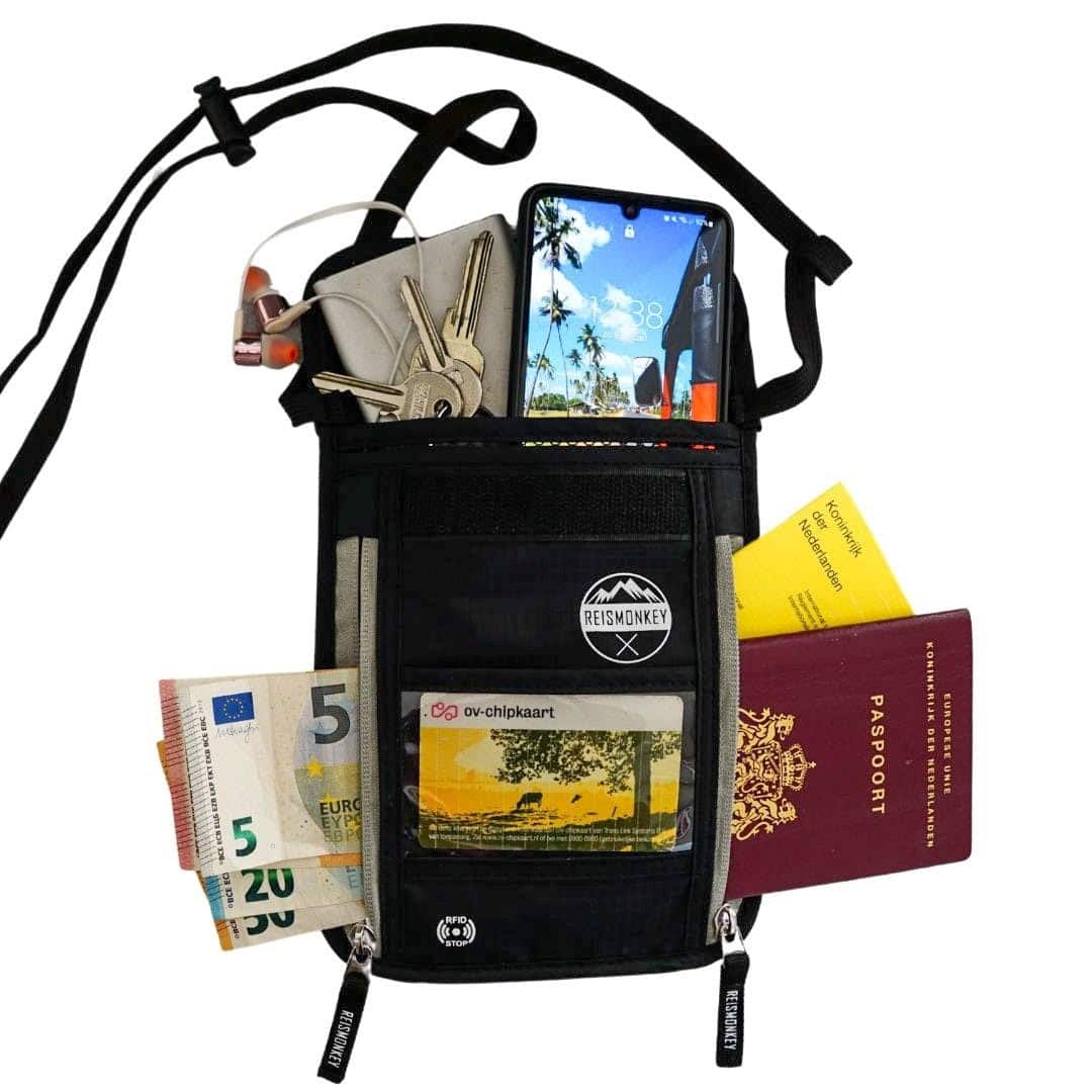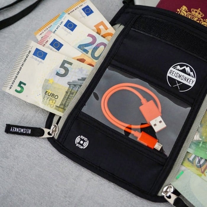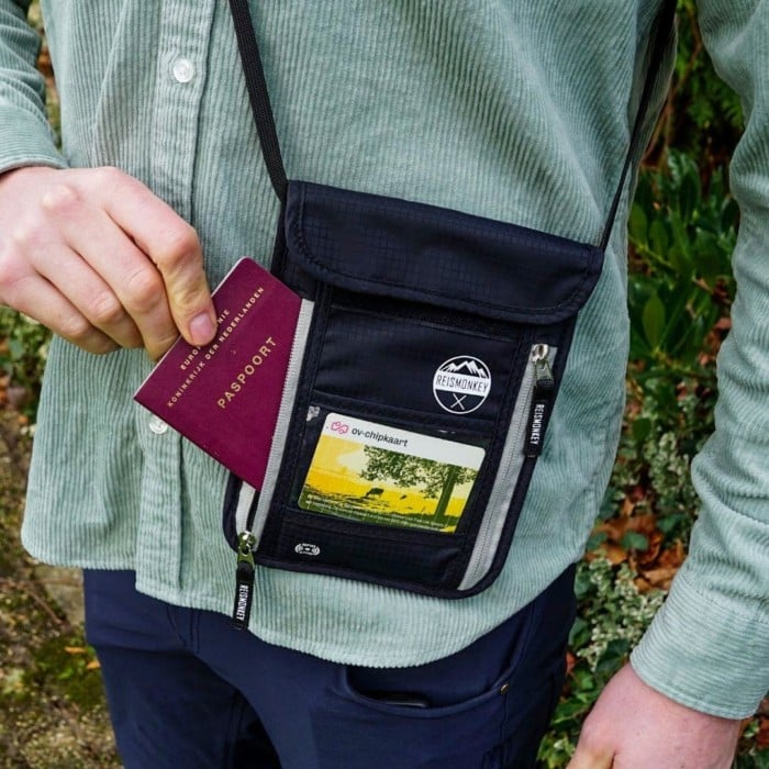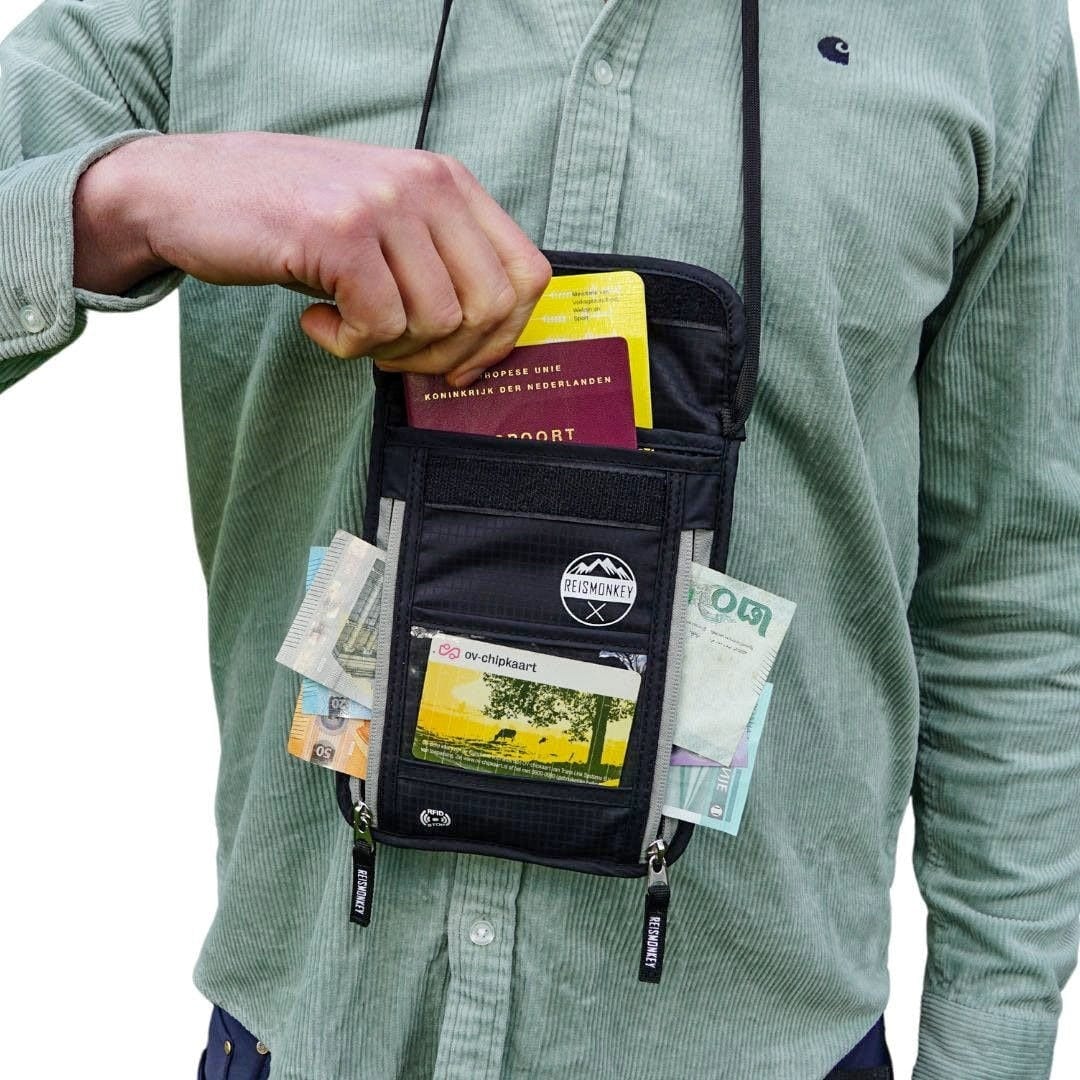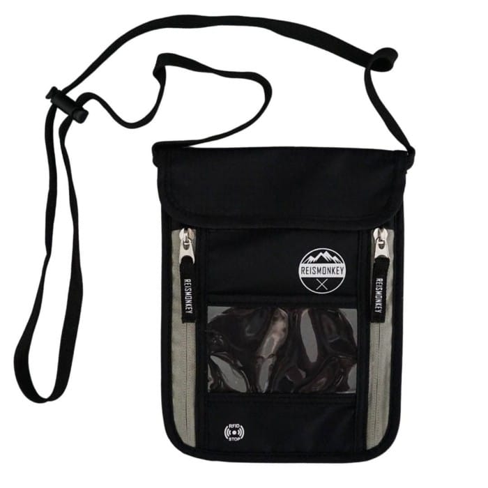 Prévenez le stress à l’aéroport et le sentiment d’insécurité lors de vos déplacements. Avec le Neck Bag RFID de Reismonkey, vous gardez vos objets de valeur hors de portée des pickpockets et vous avez toujours tout à portée de main lorsque vous voyagez. Le Neck Bag est invisible si vous le portez sous vos vêtements. Grâce à la technologie de blocage RFID du sac, vous pouvez empêcher le piratage de votre carte bancaire. Avec ce tour de cou qui sert également de portefeuille de voyage, vous pourrez profiter de votre voyage en toute sécurité et sans soucis ! Le Neck Bag RFID est le portefeuille le plus sécurisé en voyage. Vous ne voulez pas vous faire cambrioler en voyageant. Pour vous épargner cela, il est important de garder vos objets de valeur en lieu sûr.