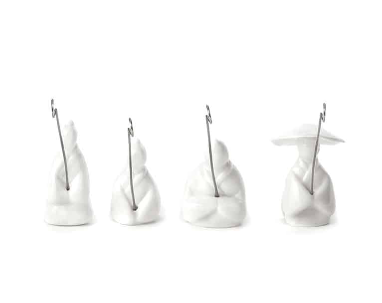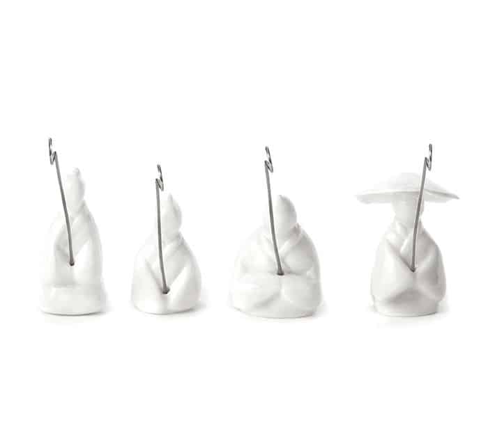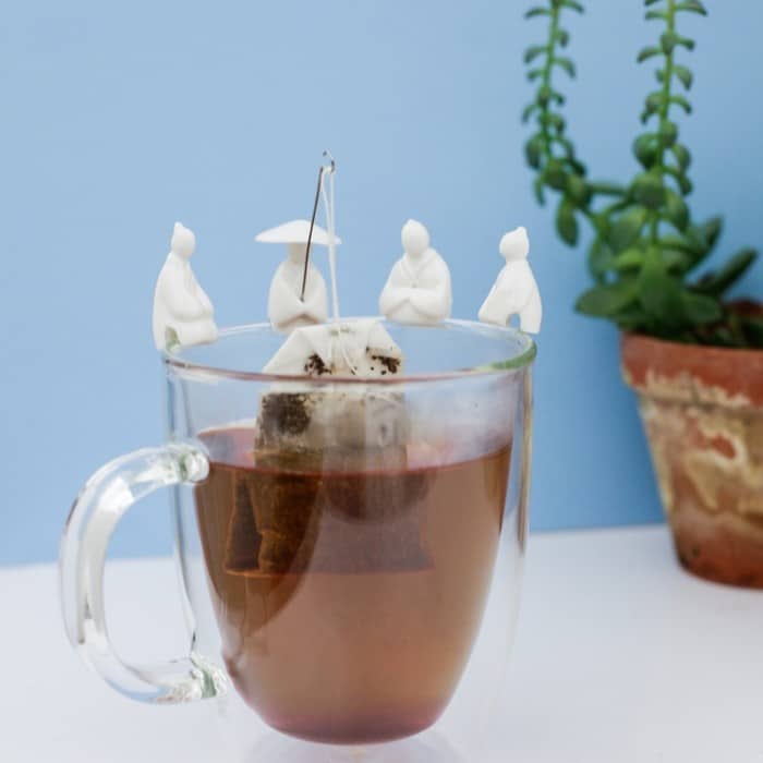 Ces porte-thé sont basés sur une vieille légende chinoise. Jiang Taigong utilisait une canne à pêche avec un hameçon sans appât. Il croyait que les poissons viendraient à lui lorsqu’ils seraient prêts à être attrapés. Maintenant, il peut patiemment tenir votre sachet de thé pendant qu’il infuse. Avec 4 pêcheurs différents. Flexible, s’adapte à la plupart des tasses.