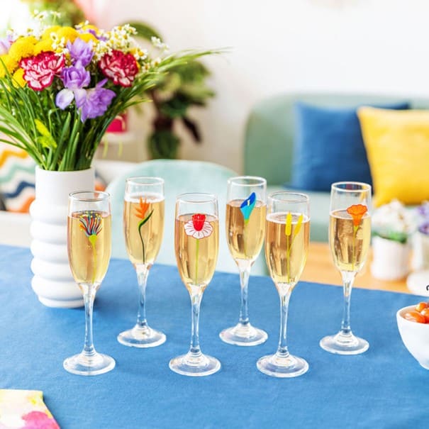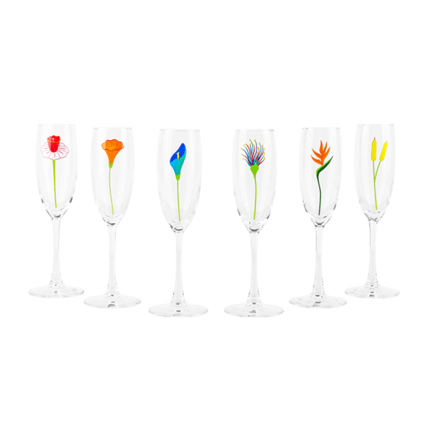 Champ de Fleurs est un ensemble de 6 flûtes à champagne, chacune ornée d’une fleur unique. Ces flûtes viendront sublimer votre expérience culinaire, que vous savouriez un repas convivial entre amis ou que vous organisiez un apéritif festif. Chacun pourra identifier son verre de manière ludique grâce à la charmante fleur qui l’orne, ajoutant une touche de fantaisie à vos rassemblements. Avec une généreuse capacité de 180 ml, ces verres sont parfaits pour déguster votre champagne ou votre boisson pétillante préférée. Champ de Fleurs est présenté avec élégance dans une boîte joliment décorée, qui remplit trois fonctions : un cadeau charmant, un transport facile, et une solution pour ranger vos verres. Ces flûtes à champagne sont compatibles avec le lave-vaisselle, ce qui vous permettra de vous concentrer sur la dégustation (toujours avec modération !) sans vous soucier du lavage manuel.