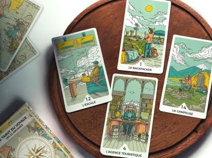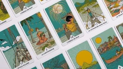 Embarquez pour un beau voyage et laissez les cartes révéler la route vers vos rêves. Inspiré par l’aventure, ce tarot unique en 22 arcanes majeurs vous invite à un voyage initiatique et à l’aventure ! Découvrez les arcanes du voyage et de l’aventure ! Ce tarot de 22 cartes vous invite à explorer des horizons nouveaux. Laissez-vous guider par les symboles de ces arcanes et découvrez le chemin que le destin vous réserve. Ce tarot enrichira vos voyages, tant physiques que spirituels, en vous ouvrant la voie vers des horizons inédits.