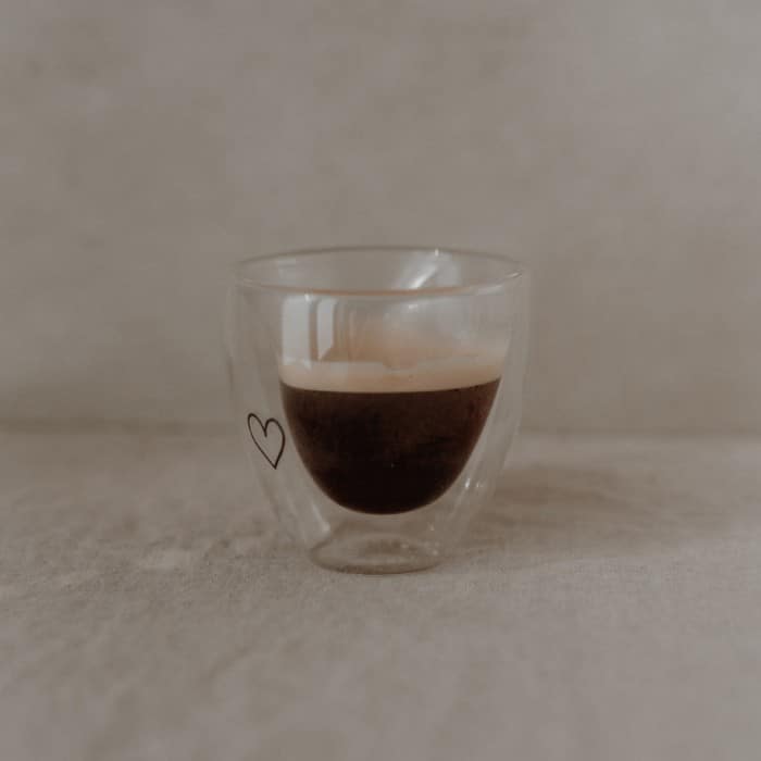 La particularité de ce verre est la forme de cœur dans laquelle il évoque votre boisson préférée. Remplissez le verre avec le café ou, du haut, votre café se transformera en cœur. La conception à double paroi permet à votre boisson de flotter et en même temps vous évite de vous brûler les doigts car l’extérieur du verre ne chauffe plus même lorsque la boisson est chaude.