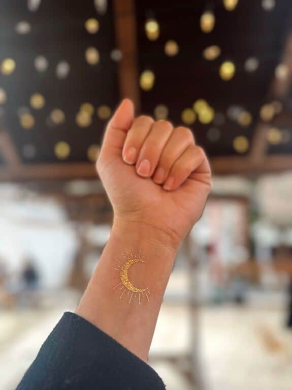 Tatouage éphémère d’une Lune Dorée. Brillez avec notre tatouage éphémère de la lune dorée !