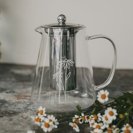 La théière Daisy apporte charme et fonctionnalité à votre maison ! La délicate marguerite en blanc détaillé orne le milieu de la carafe et lui donne une touche intemporelle et joyeuse. Que ce soit comme théière élégante, carafe à eau ou pour un délicieux punch aux fruits, Daisy est un compagnon polyvalent au quotidien. La passoire à thé fournie est démontable en trois parties, ce qui rend non seulement le nettoyage un jeu d’enfant, mais offre également une flexibilité maximale. Cela signifie que vous pouvez utiliser la théière sans passoire après avoir infusé le thé – pour des boissons froides ou d’autres boissons préférées. Que ce soit pour un remontant aromatique le matin ou une tasse de thé douillette le soir : avec la théière Daisy, chaque gorgée devient un petit rituel qui fait plaisir. Pratique, beau et polyvalent – un véritable accroche-regard dans chaque cuisine ou sur la table !