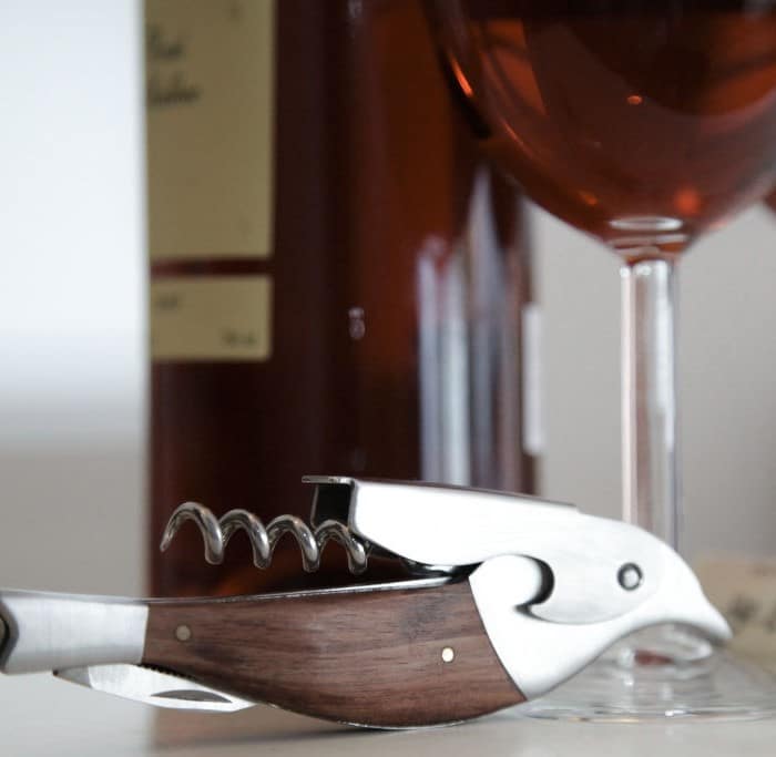 Qui se ressemble s’assemble et trinque ensemble! Tire-bouchon et décapsuleur en acier inoxydable avec une finition en chêne teinté. Le tire-bouchon est en forme de moineau.